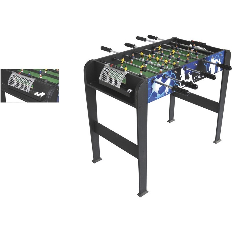 Profitez de la compétition la plus excitante et sans quitter la maison, avec cette nouvelle Babyfoot particulier 92x48x73,5 cm . Une nouvelle façon de jouer et de compétition, avec un design inspiré de la compétition européenne la plus excitante du moment. La table a été conçue dans un style moderne et stable et avec des couleurs vives. Article fait de matériaux de trés bonne qualité ainsi que résistant, idéal pour des heures de plaisir en famille et entre amis. Avec des tiges télescopiques avec un système de sécurité pour éviter les coups douloureux aux joueurs adverses. Investissez dans le divertissement le plus cool et le plus innovant, avec un sport qui ne se démode jamais chez les enfants et les adultes. Âge conseillé pour votre plaisir: + 10 ans. Comprend: 1 baby-foot en bois avec un design classique et 2 balles avec un design de ballon de foot. Mesures approximatives du baby-foot: 92 cm de long x 48,5 cm de large x 73,5 cm de haut.