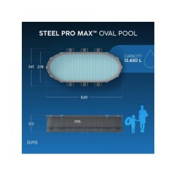 Enfin l'été arrive et maintenant vous pouvez le vivre comme jamais auparavant, seulement en obtenant cette superbe Piscine Hors Sol Ovale Power Steel de Bestway. Une piscine qui ne nécessite aucun travaux, et aux prestations impressionnantes. Obtenez cette nouvelle piscine fabriquée en matériaux de qualité optimale, avec des dimensions très amples pour profiter au maximum de sa qualité en famille et avec un design spectaculaire. Il faut simplement trouver le bon emplacement pour l'installer, et sans besoin d'outils, commencer le montage et profiter de ses magnifiques prestations. Le pack comprend : Piscine Hors Sol Ovale Tubulaire Power Steel, épurateur avec filtre à cartouche, connexions de 38 mm et débit de 5 678 l/h, cartouche pour épurateur Type III, échelle avec 3 marches intérieures et extérieures, bâche, liner de PVC, structure tubulaire Steel Frame Desing, dispenseur chimique et rustine pour réparations. Informations d'intérêt : - Mesures approximatives de la piscine : 122 cm de haut x 549 cm de long x 274 cm de large. - Piscine avec vanne de vidange rapide. - Capacité de la piscine : 13 430 litres d'eau. - Hauteur approximative de l'échelle : 122 cm de haut. - Épaisseur approximative du liner : 0,4-0,8 mm. - Durée approximative du montage : 30 minutes, sans besoin d'utiliser des outils.