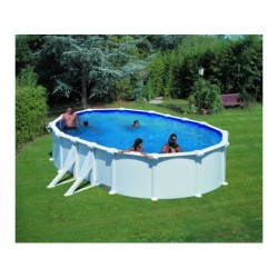 PISCINE OVALE GRE DREAM POOL ATLANTIS Haute qualité. Garantie et soutien technique. Description : - Dimensions : 910 x 470 x 132 cm (longueur x largeur x hauteur) - Espace nécessaire pour le montage 955 x 690 cm - Capacité :approximative 43.595 litres - Liner PVC bleu 40/100 avec traitement anti-ultraviolet - Parois en acier galvanisé polylaminé, phosphatées, imprimées et laquées - Structure en acier (15 cm horizontal / 12 cm vertical) - Protections moulées par injection - Orifice pour buse de refoulement et skimmer Inclus : - Échelle de sécurité à 6 marches + plate-forme - Épurateur à sable qui permet de filtrer 8 m3 / heure - Sable compris - Tapis de sol en polyéthylène 115 g/m2
